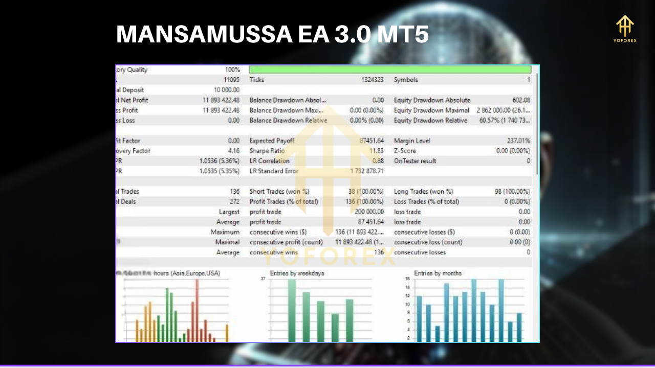 MANSAMUSSA EA 3.0 MT5 is a powerful Forex trading robot that combines smart algorithms with strict risk management. Whether you want passive income or a reliable automated trading system, this EA offers a proven solution.