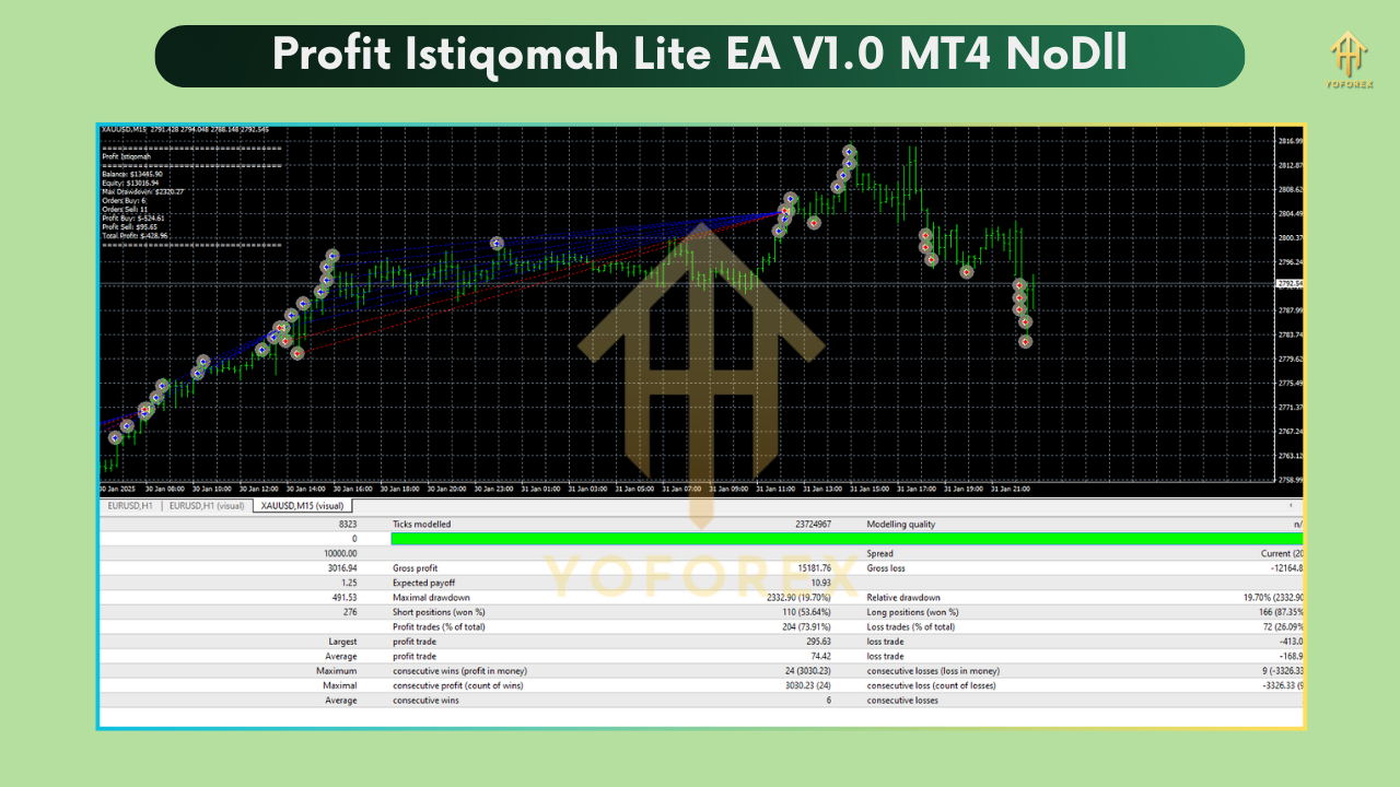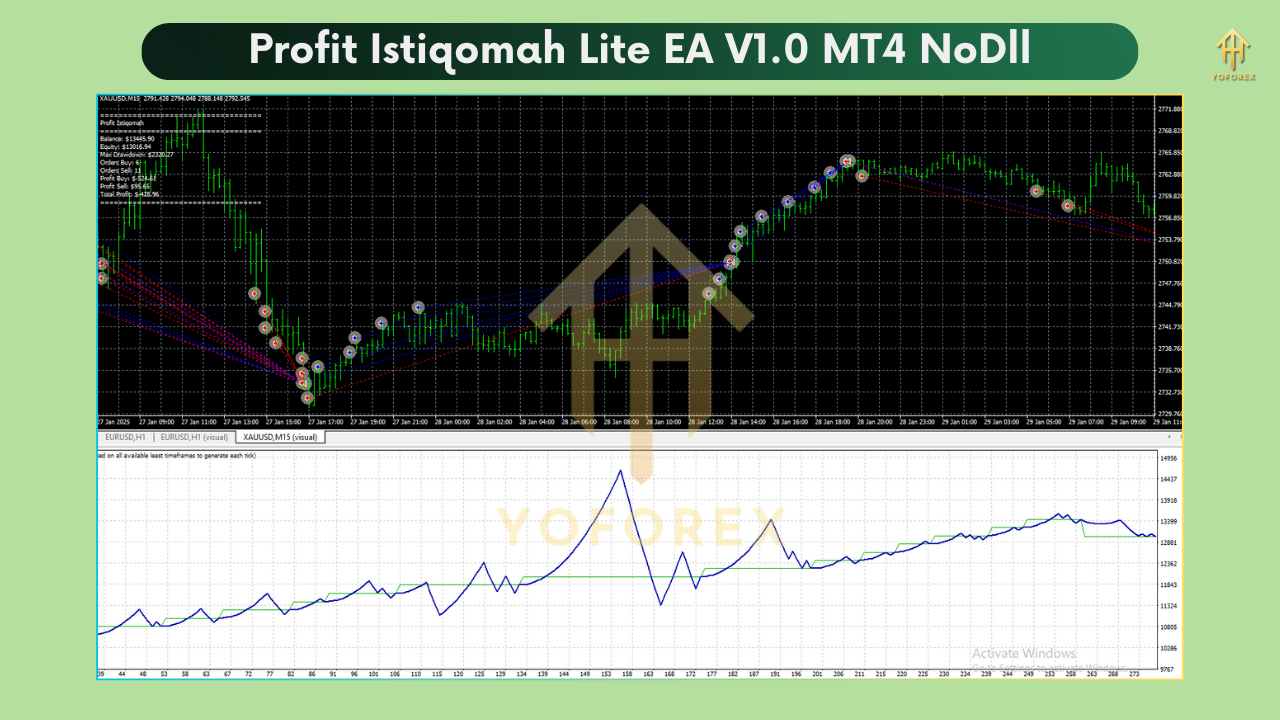 The Profit Istiqomah Lite EA V1.0 MT4 is a fully automated Expert Advisor (EA) designed for MetaTrader 4 (MT4) that specializes in low-risk, high-probability forex trading. Unlike risky grid or martingale systems, this EA uses advanced algorithms to trade EURUSD, GBPUSD, and other major pairs with minimal drawdown.