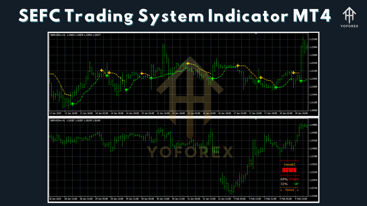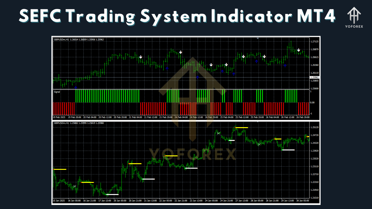 The SEFC Trading System Indicator is a powerful technical analysis tool designed for the MetaTrader 4 (MT4) platform. It is popular among traders for its ability to identify precise entry and exit points, helping them make informed decisions. The SEFC indicator combines various elements of technical analysis, making it a comprehensive trading system for forex traders.