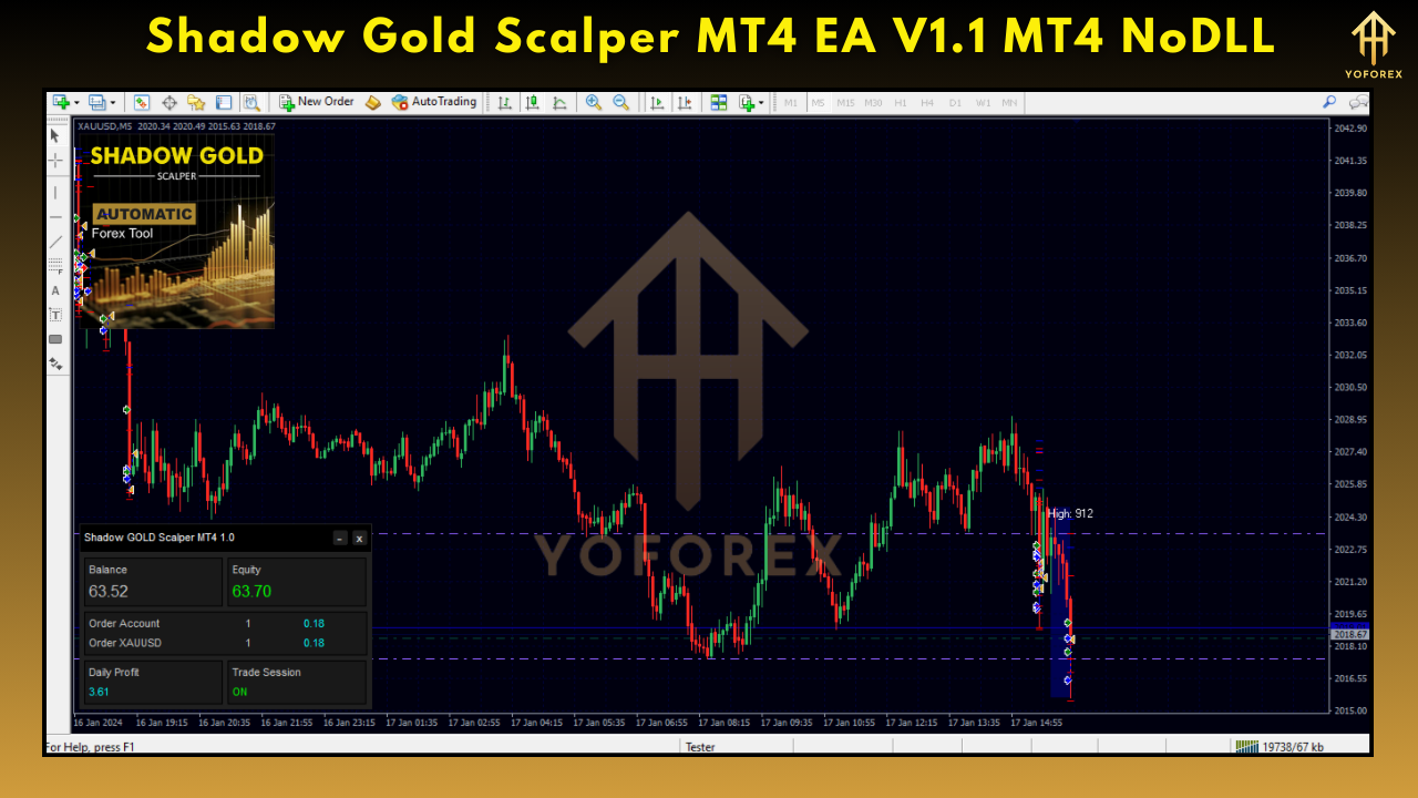 Shadow Gold Scalper MT4 EA executes trades automatically, removing the need for manual intervention. Once set up, it continuously scans the market and places trades based on its internal algorithm.